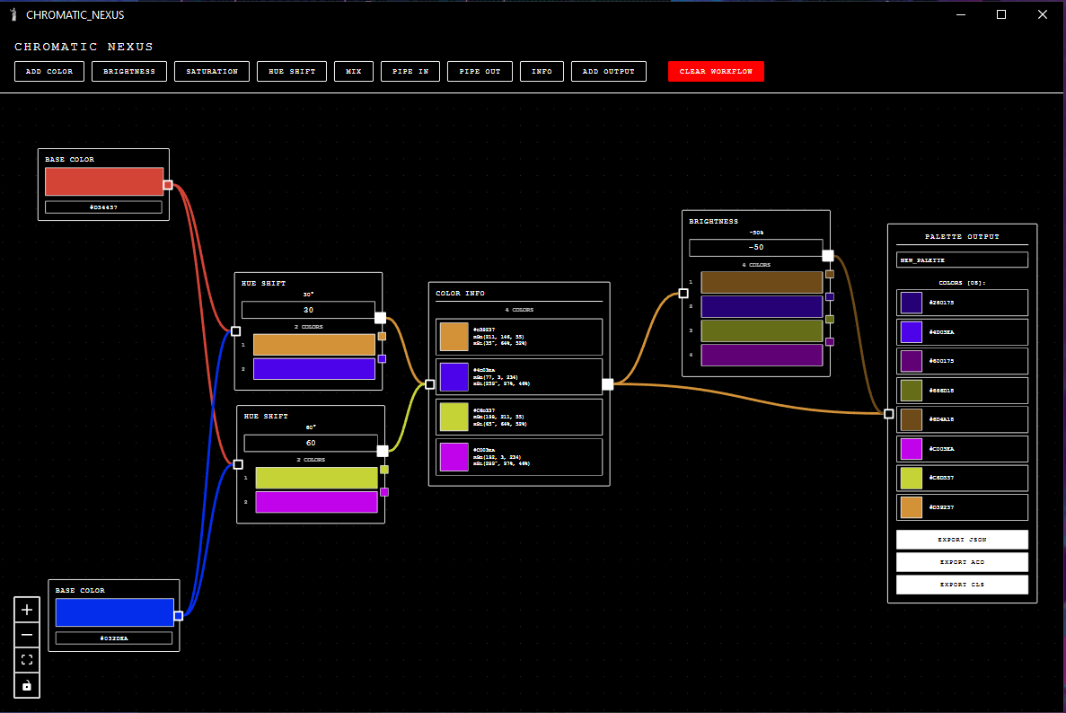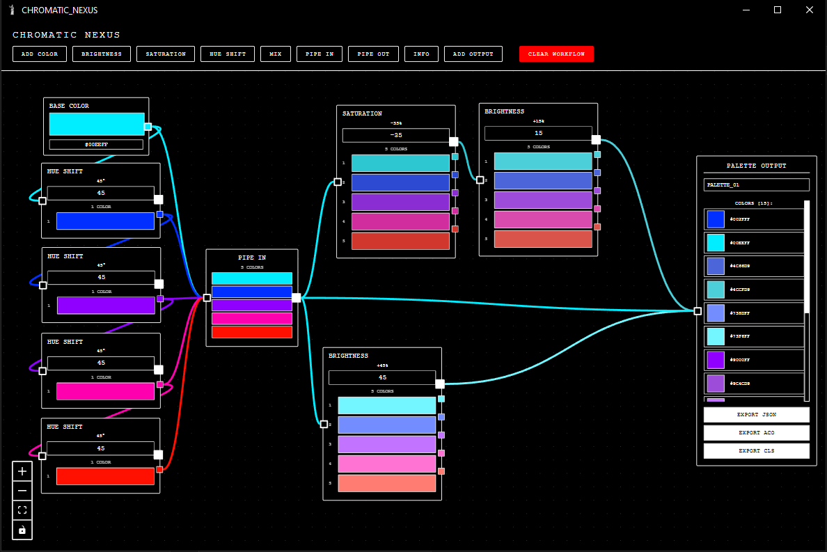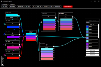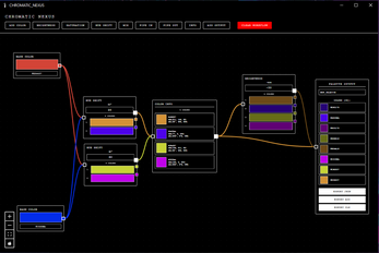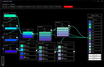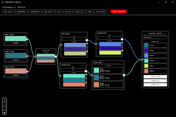 Nodes Are Neurons - Each node is a decision point in the color-mind. Wire them together and watch hue-data cascade through your personal synapse-map. This isn't a flowchart—it's a living color organism that breathes in base wavelengths and exhales curated palettes.
